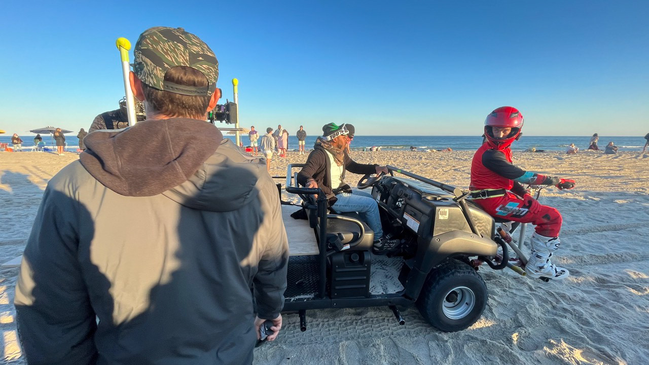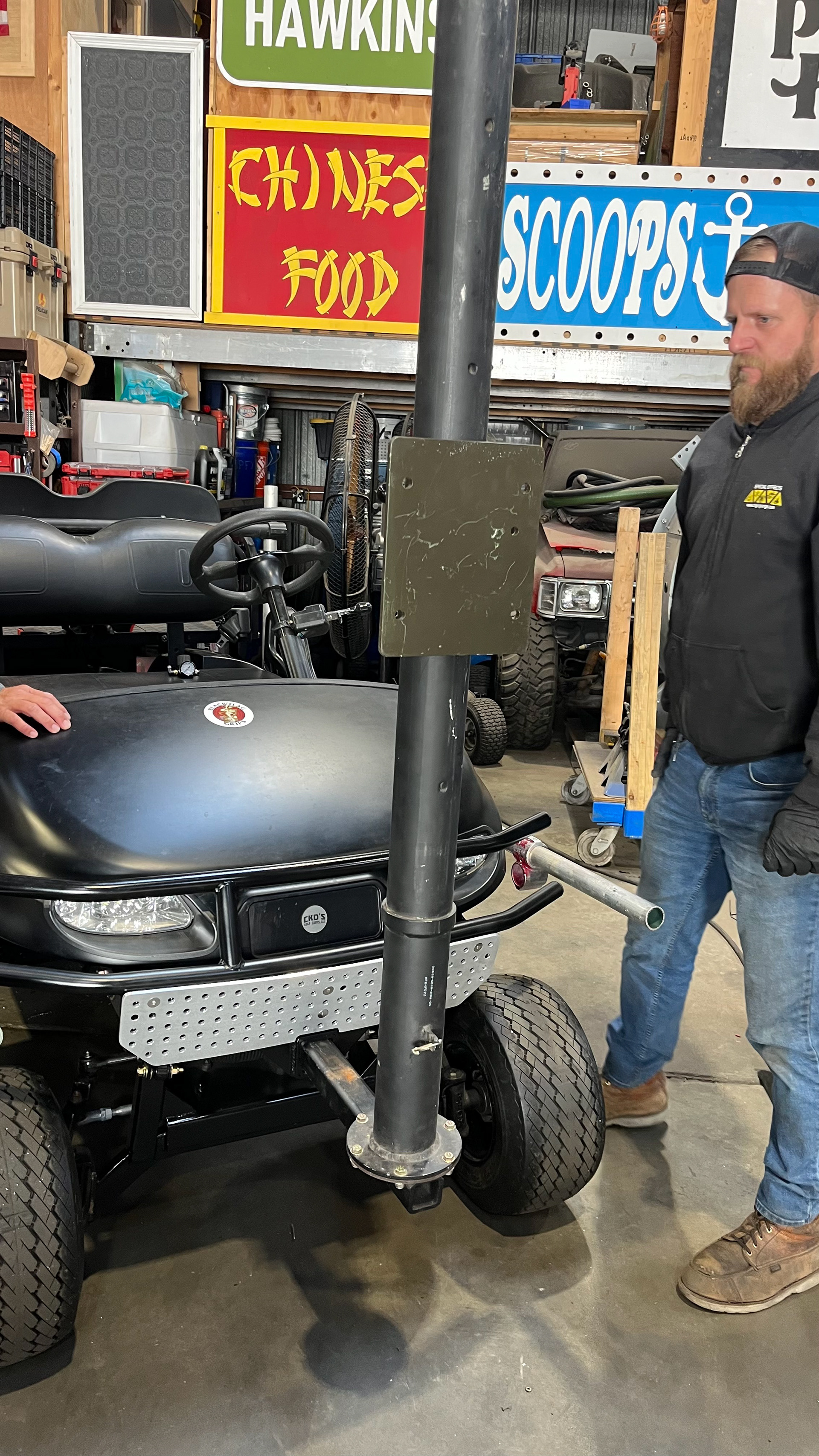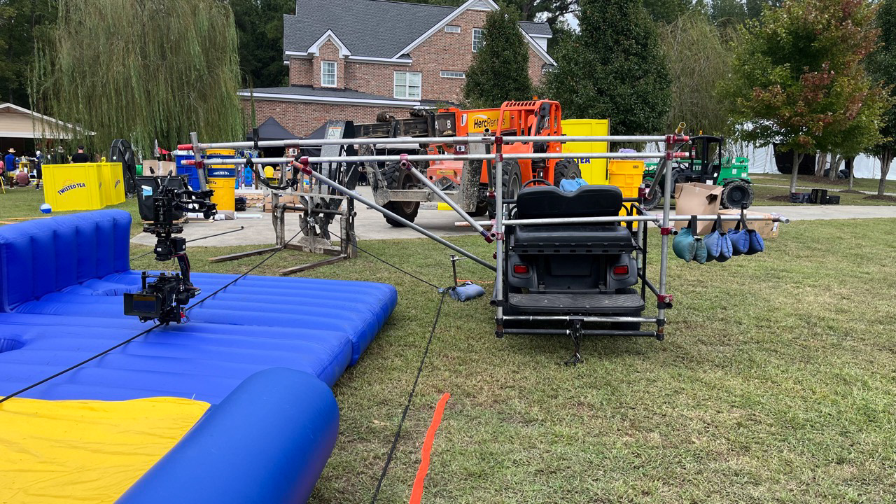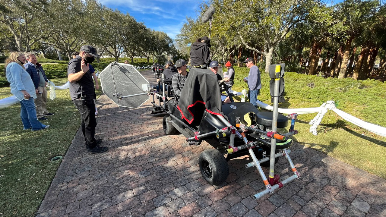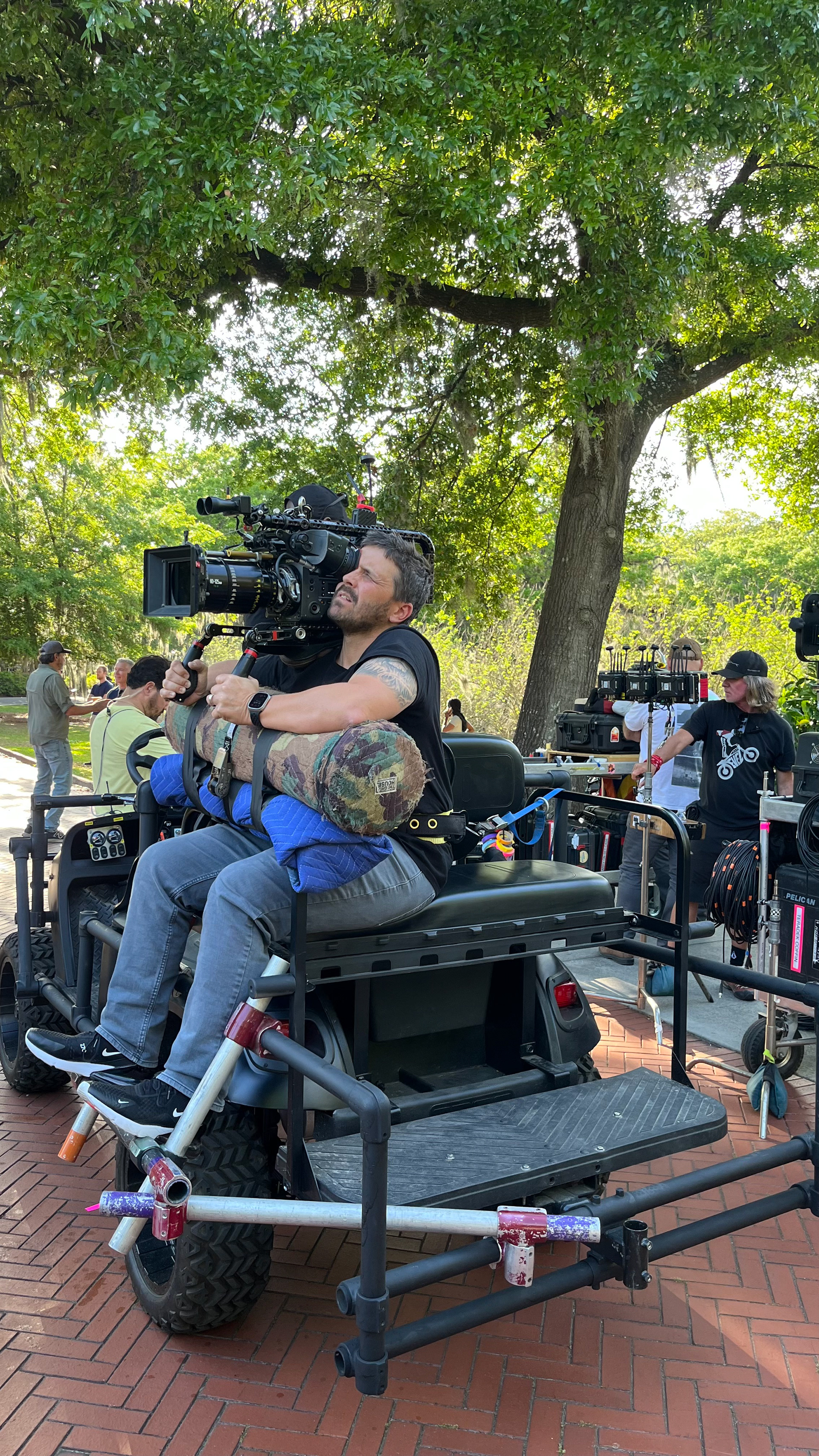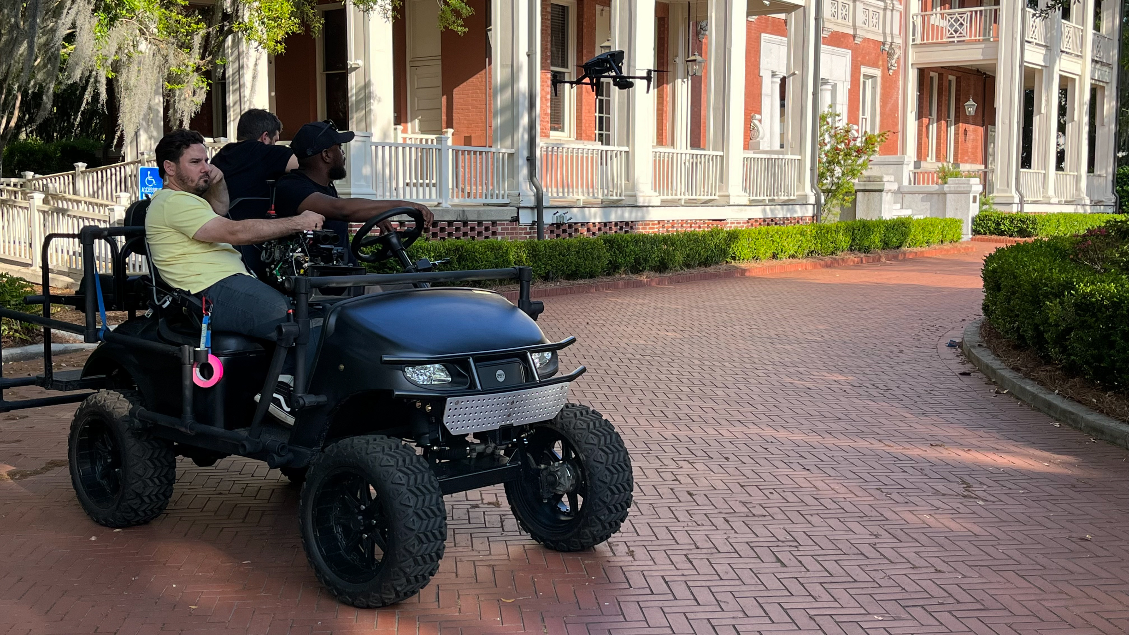 The 2023 EZ GO TXT CUSOM GOLF CART. CAPABLE OF 30+ MPH FULLY ADJUSTABLE FOR SLOW WALK AD TALKS TO FAST CHASE SEQUENCES.